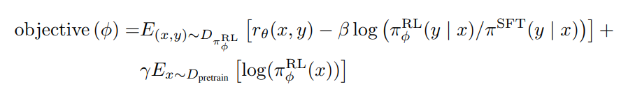 - 基于让 reward model 给出的分值最大化的前提, 通过 PPO 算法优化模型策略, 为了避免 reward model 过于绝对, 给 reward model 加了 惩罚项, 防止迭代中的策略与初期的 SFT 策略偏离太远